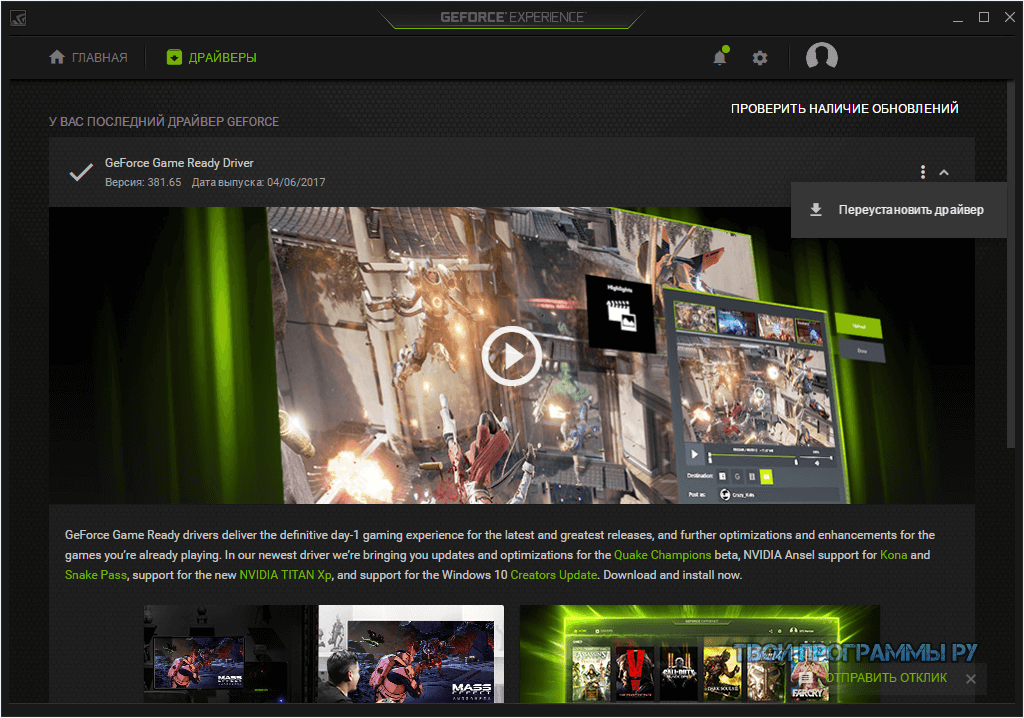 Если у Вас установлены актуальные драйвера для видеокарты(которые не нуждаются в обновлении), либо есть проблемы соединения с сервером на оф.сайте Nvidia, то Вы увидите вот такое уведомление.