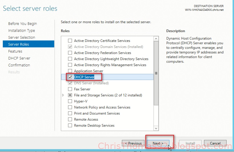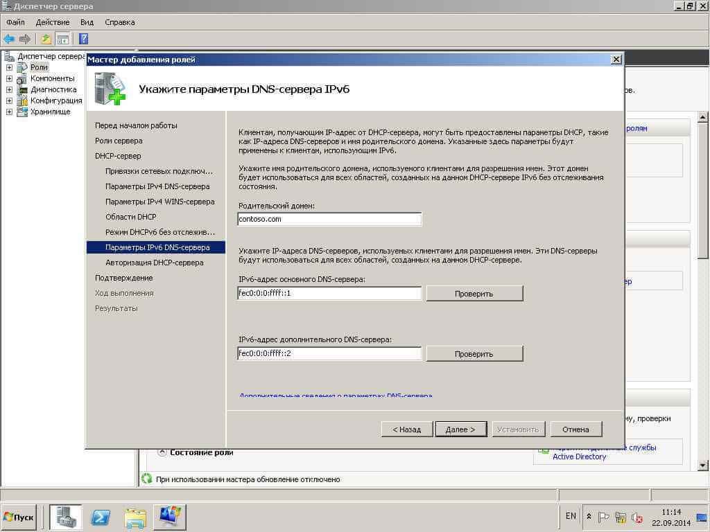 Установка службы DHCP на существующем сервере