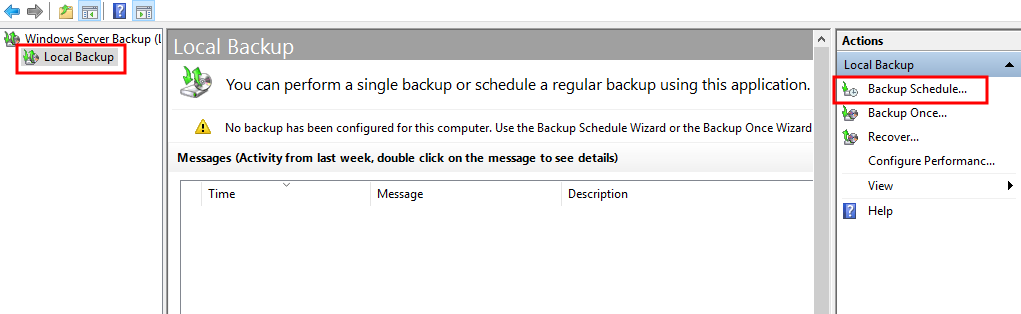 Резервное копирование базы данных Active Directory 1. Теперь перейдите в Диспетчер серверов и нажмите Инструменты >> Windows Server Backup , чтобы открыть его. Вы также можете открыть эту консоль, выполнив команду wbadmin.msc в Windows «Выполнить» (Ctrl+R). Когда он откроется, вы сможете увидеть статус запланированного и последнего резервного копирования (если только вы не делаете это в первый раз).
