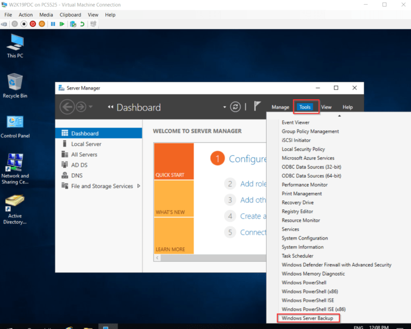 - Вам необходимо установить функцию резервного копирования Windows Server, если вы еще этого не сделали. Windows Server 2019, как и предыдущие выпуски, поставляется с функцией резервного копирования Windows Server, которая помогает выполнять резервное копирование и восстановление базы данных Active Directory. Теперь мы подробно рассмотрим вышеперечисленные шаги.