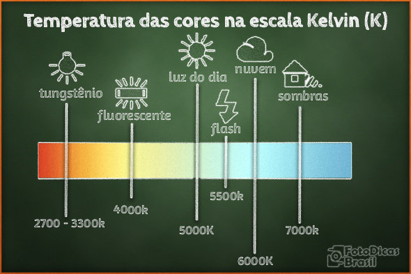 Иллюстрация выше дает представление об относительных «цветах» различных источников света, от вольфрамового освещения (больше красного) при низких температурах до голубого неба с высокой цветовой температурой (больше синего).Также показан цвет фильтра, необходимого для «компенсации» цвета источника света для получения правильного цвета.