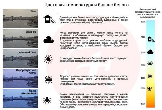 Ниже представлена таблица с некоторыми источниками света и их ориентировочной цветовой температурой.