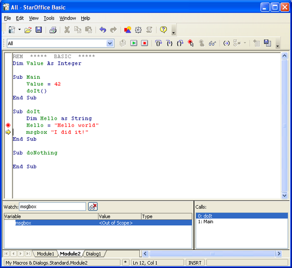 Результат действия этого оператора такой же, как и оператора Print, только выводимые значения появляются в окне Неотложного (окно Immediate)