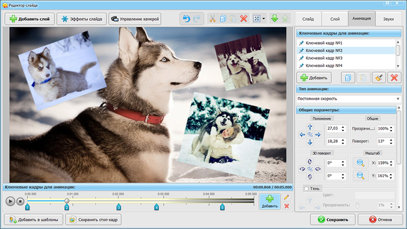 Средство создания слайд-шоу поставляется с параметром временной шкалы, который позволяет точно создавать слайд-шоу по вашему выбору. Эта программа для создания слайд-шоу довольно проста в использовании.