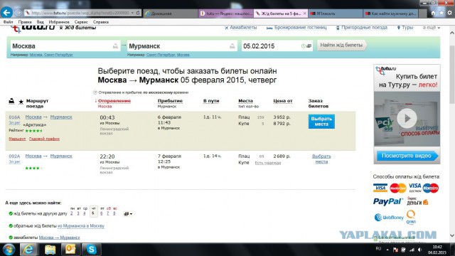 Покупка жд билетов на сайте сервиса Яндекс Путешествия: