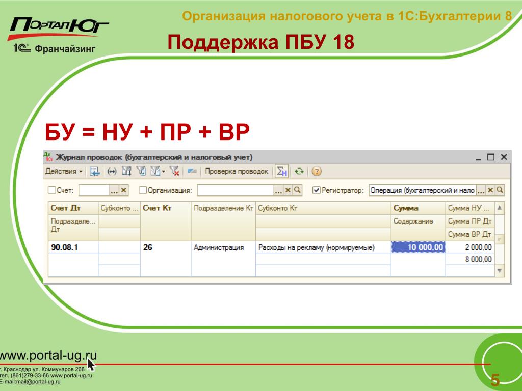 После заполнения документа следует просмотреть проводки. В проводках данные, которые указываются в графе «Сумма», связаны с бухучётом. К налоговому учёту относятся данные, прописанные в графе «Сумма Дт» и «Сумма Кт». ПР и ВР – это постоянные и временные разницы. Сумма постоянных разниц дополнительно указана на забалансовом счёте, который связан с НУ.