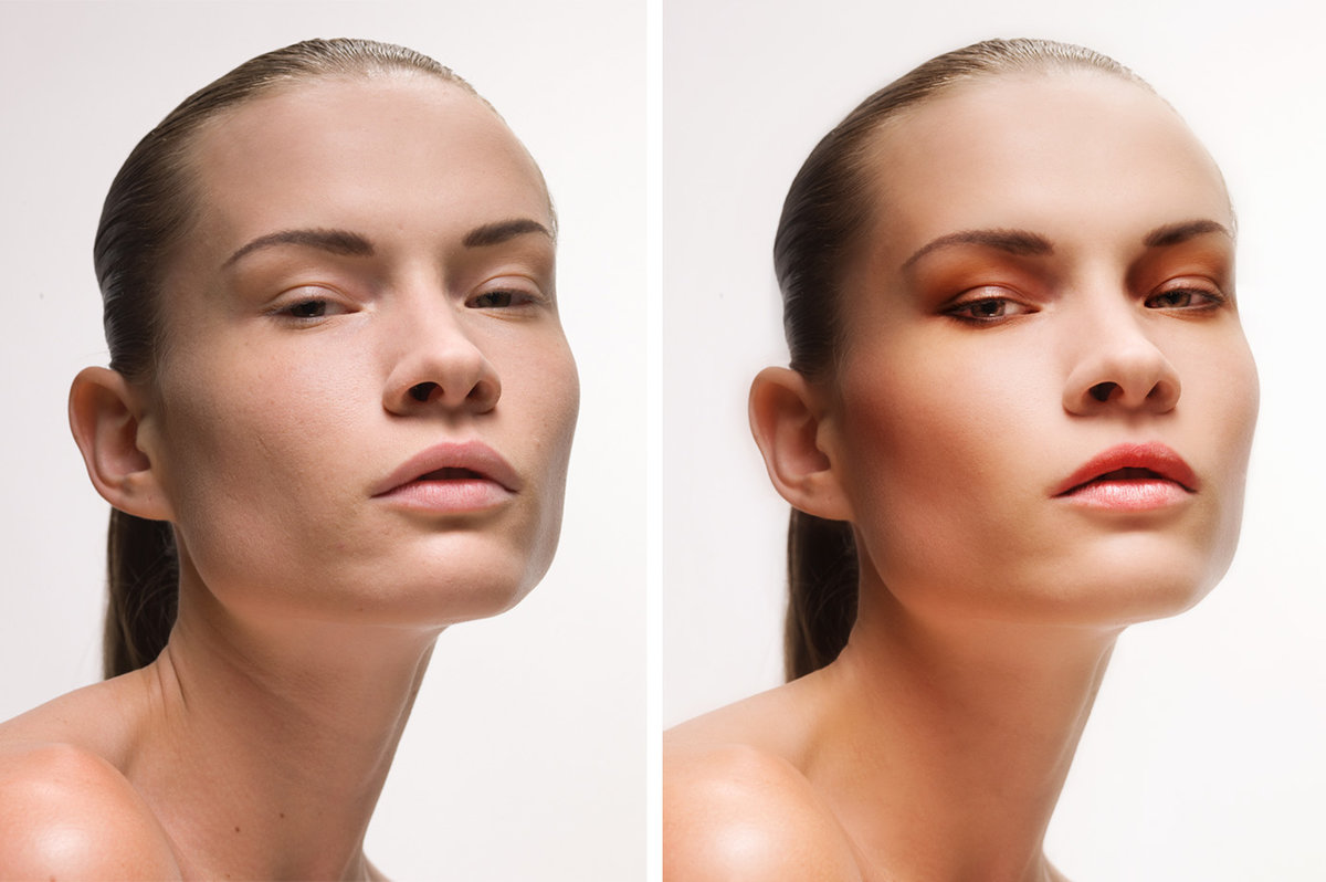 - На этом можно сказать, что наша работа по ретушированию лица методом частотного разложения успешно завершена. Сравним исходное и полученное в результате обработки фото. Мы не стали убирать все изъяны, чтобы сохранить естественный внешний вид кожи.