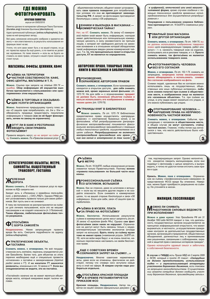 Право гражданина на фотографирование регулируется несколькими законами РФ. Во-первых, это 29-я статья Конституции, согласно которой каждый из нас может свободно получать и распространять информацию. Во-вторых, федеральный закон «Об информации, информационных технологиях и о защите информации» от 27.