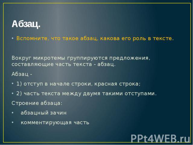 так и устной. Во-вторых, абзац является единицей композиции текста, и