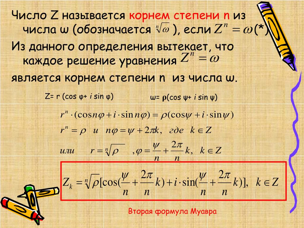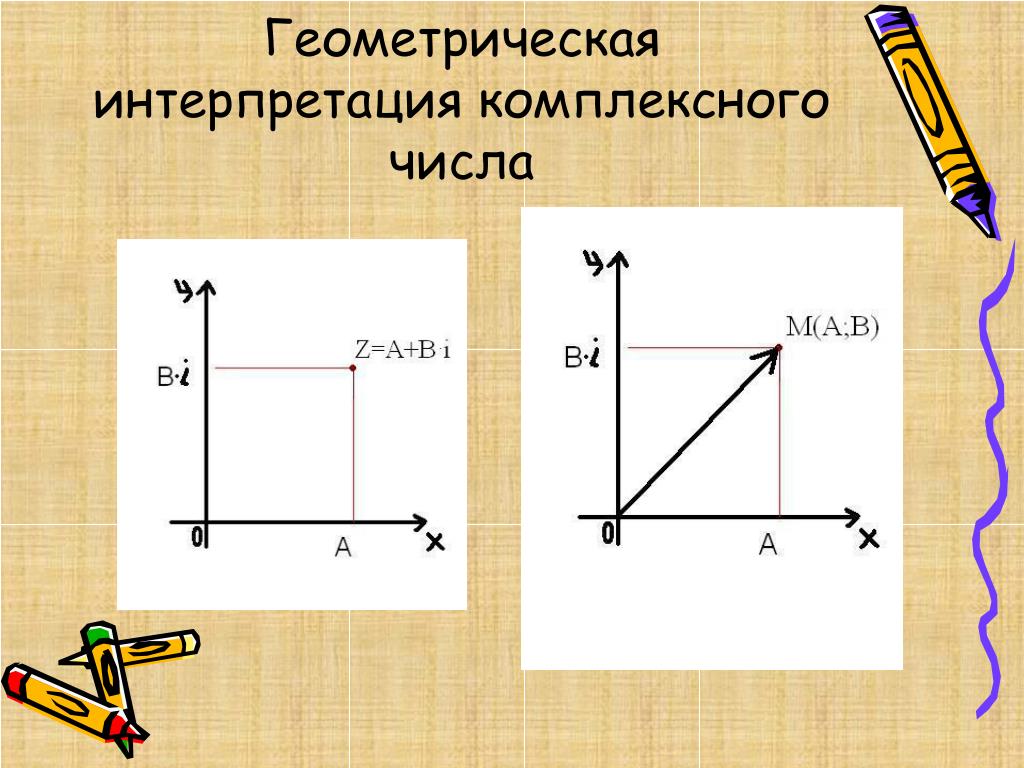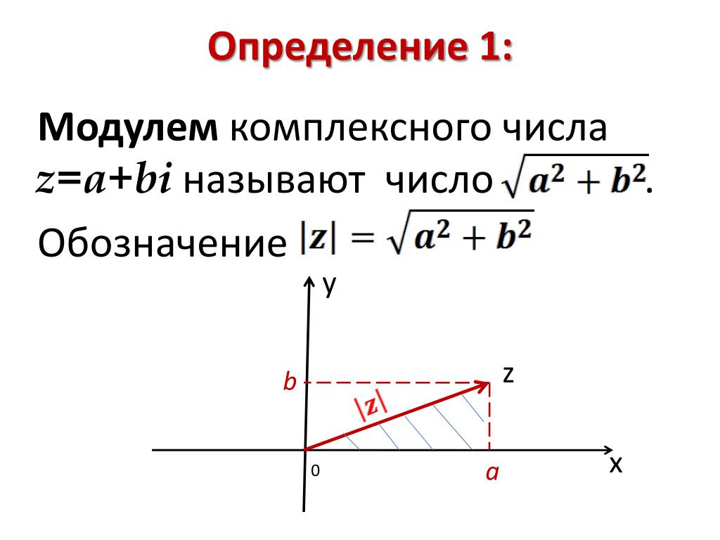 Пример этого показан на рисунке ниже. 92}} \) — это не что иное, как длина вектора, который мы используем для представления комплексного числа \(z = a + bi\). Эта интерпретация также говорит нам, что неравенство \(\left| {{z_1}} \right| < \left| {{z_2}} \right|\) означает, что \({z_1}\) ближе к началу координат ( в комплексной плоскости), чем \({z_2}\).