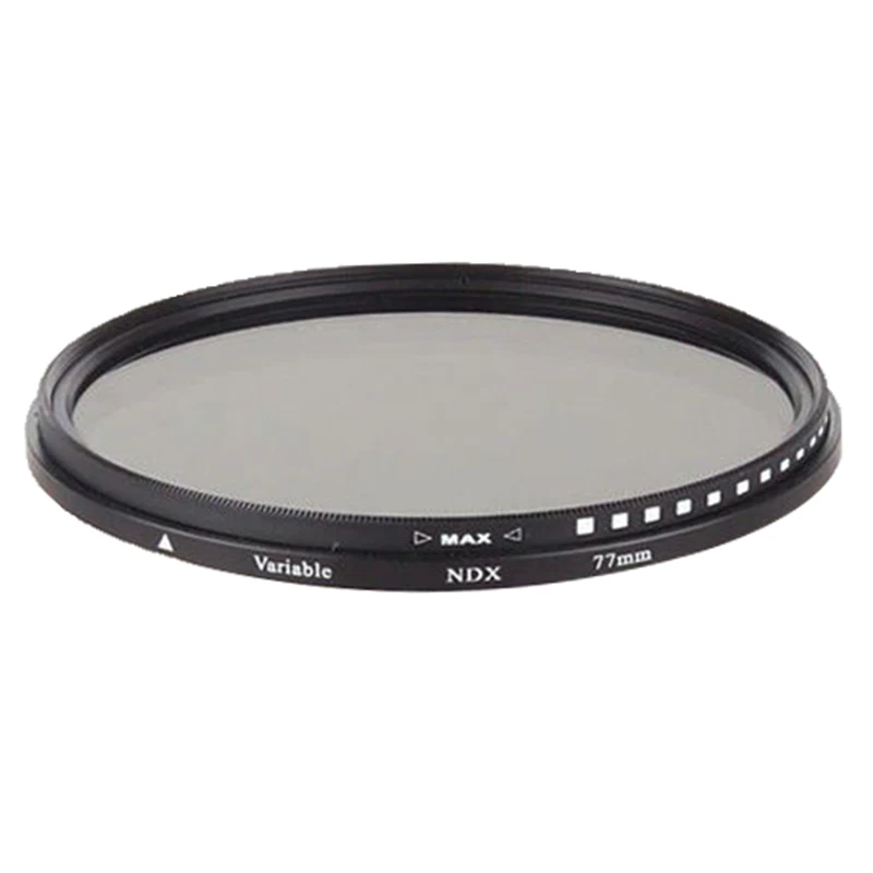 Существуют также нейтральные фильтры с плавной регулировкой плотности (variable range nd filter) от ND2 до ND400 и даже ND1000. Фактически это два поляризационных фильтра, вращающиеся один относительно другого.[4]