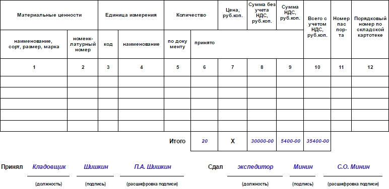 - №05, №06, №08, №12 – данные о материальных ценностях;