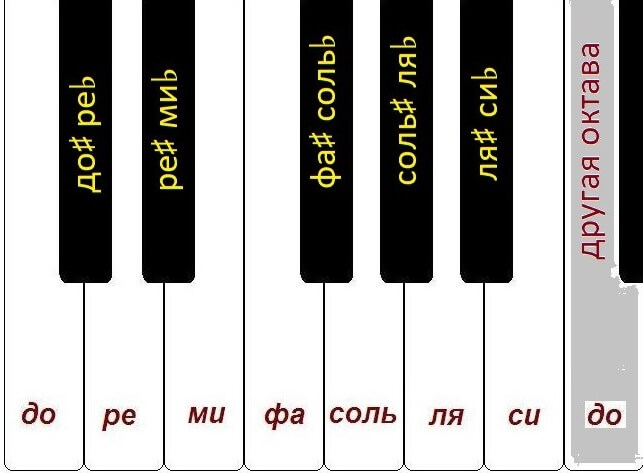 Из двенадцати звуков в октаве только семь имеют собственные названия (до, ре, ми, фа, соль, ля, си).
