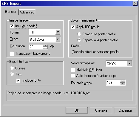 Если вы готовите файл EPS для печати, убедитесь, что необходимые шрифты внедрены для размещения в других программах. Используйте для этого программы Illustrator или Free Hand. Изображение и шрифт должны создаваться в одной графической программе.