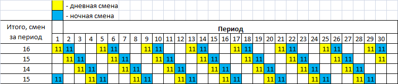 В графике надо поставить каждому работнику рабочие и выходные дни, продолжительность смены и время её начала и конца.
