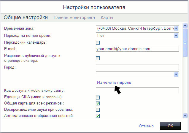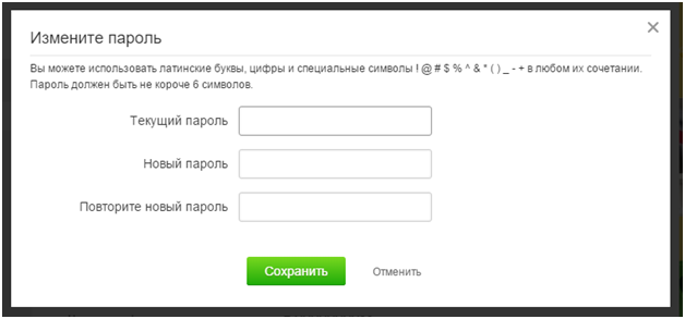 Щелкните по ней для входа в диалоговое окно, позволяющее сменить пароль.