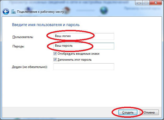 В окне настройки параметров входа: