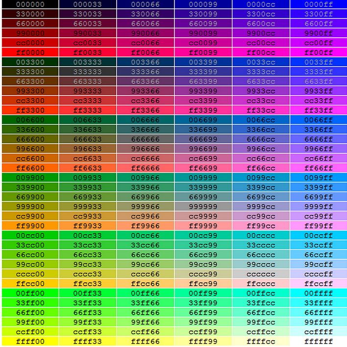 комбинация дает однородную панель из 216 цветов (6 в кубе = 6