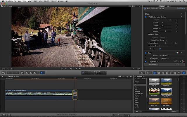 iMovie предлагает коллекцию из 34 фильтров перетаскивания, которые позволяют быстро создавать разнообразные творческие образы. Final Cut Pro X может похвастаться более полной коллекцией из 168 эффектов фильтров. В отличие от iMovie, вы можете изменить свойства фильтра в Video Inspector Final Cut Pro X, чтобы настроить внешний вид фильтра. Некоторые эффекты фильтров особенно креативны. Например, фильтр SLR делает отснятый материал таким, как если бы он просматривался через объектив SLR-камеры. Вы можете использовать ключевые кадры для изменения фокуса камеры и даже запускать анимацию затвора, чтобы сделать это мгновенно. Эти анимированные эффекты фильтров позволяют добавлять текстуру и разнообразие в отснятый материал и помогают рассказывать историю более творчески.