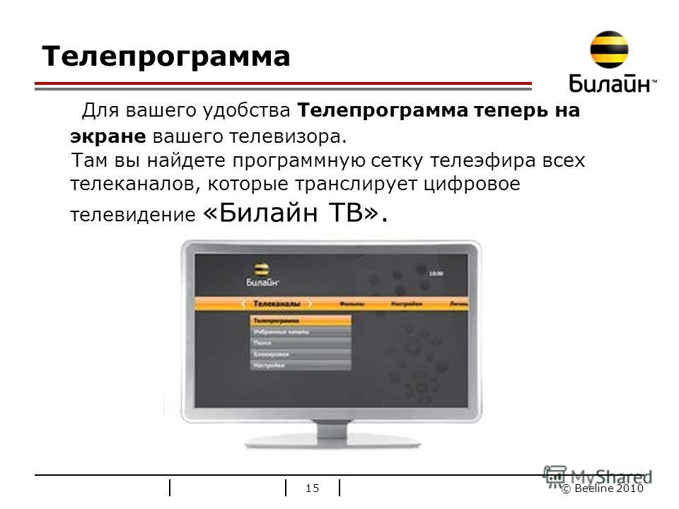 Запущенная в 2009 году, компания «Билайн ТВ» сейчас представлена более чем в 35 городах России с помощью домашнего интернет-сервиса, предлагающего более 200 каналов SD и 39 каналов HD. Кроме того, услуга включает доступ по запросу к более чем 3000 фильмов и телесериалов, в том числе от Disney, Warner Bros., Sony Pictures и Paramount Pictures. Одна из последних инноваций Beeline TV теперь позволяет пользователям подключаться через устройства Xbox(R) 360 без необходимости покупать или арендовать телевизионную приставку.
