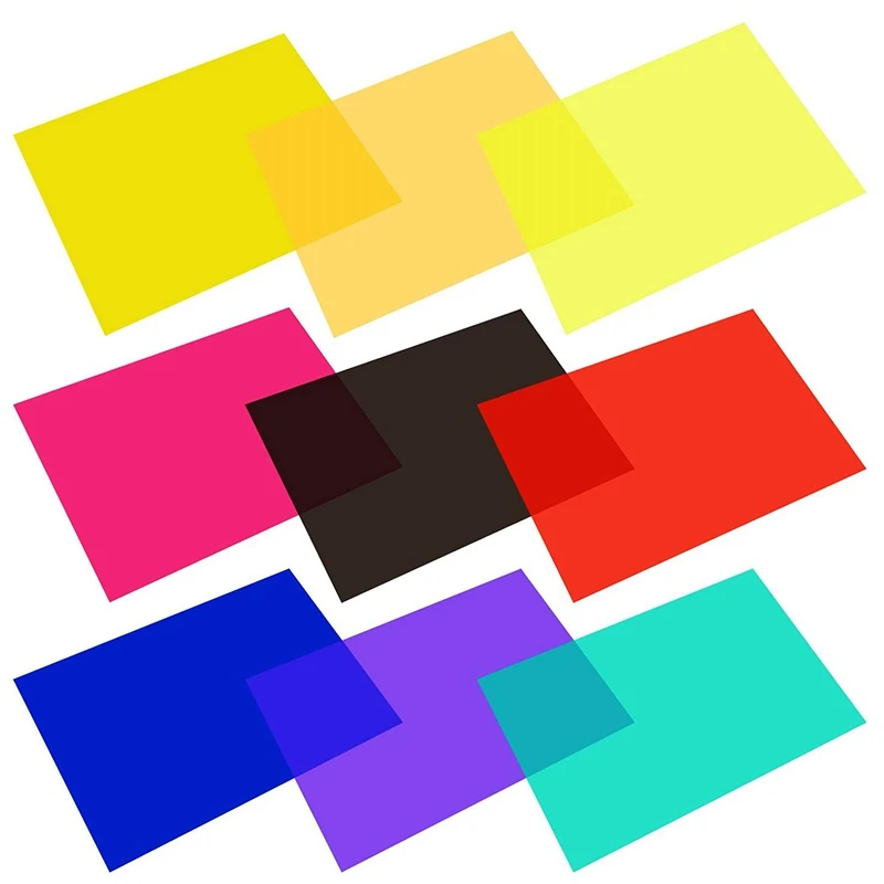 - Несколько разных цветов прозрачного пластика для использования в качестве цветных фильтров, например, цветные ацетатные обложки для отчетов, цветной акриловый пластик из магазина пластмасс или что-то в этом роде.