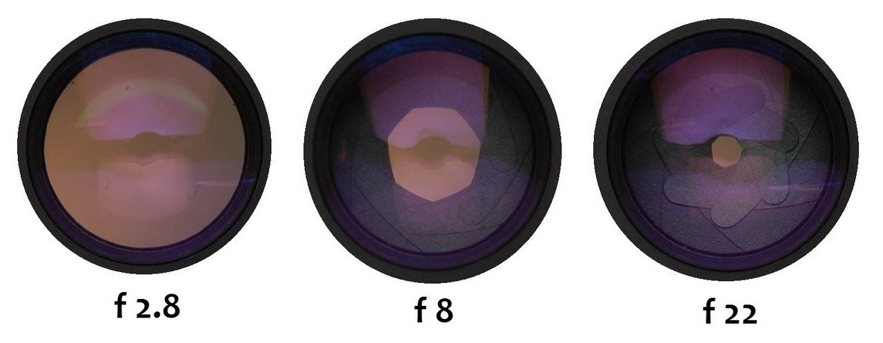 Разные отверстия при разных значениях числа F