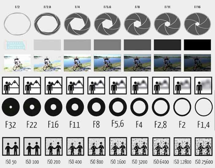 Диафрагма означает, какое количество света пройдёт сквозь объектив из 5-6 линз (бывает и больше) и в конечном счёте осядет на матрице.