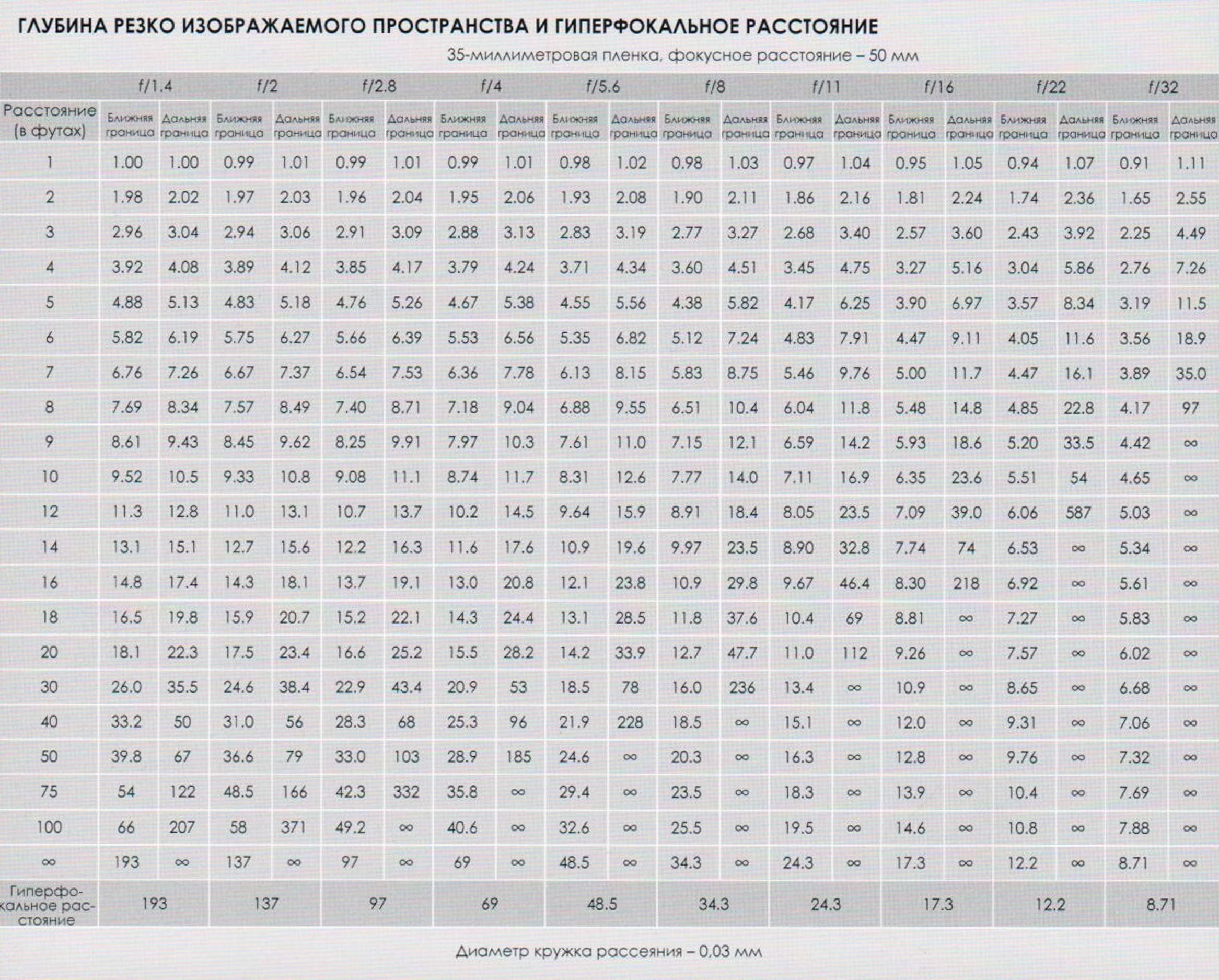 Сводка по диафрагме и глубине резкости