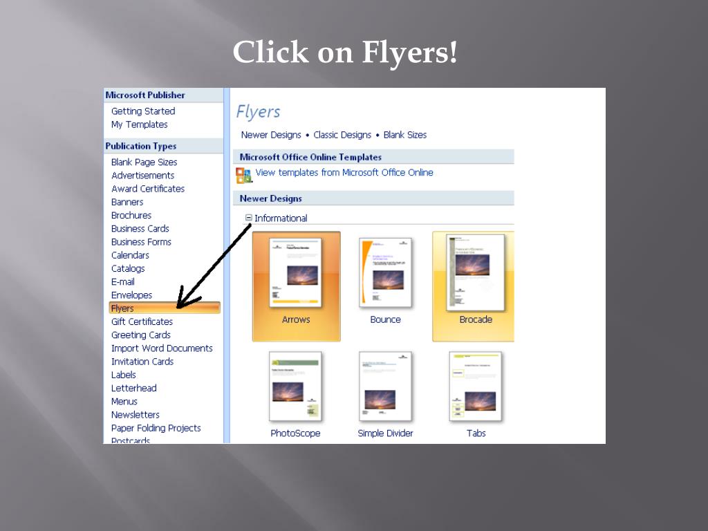 Щелкните Выбрать публикацию, чтобы открыть шаблон Publisher.