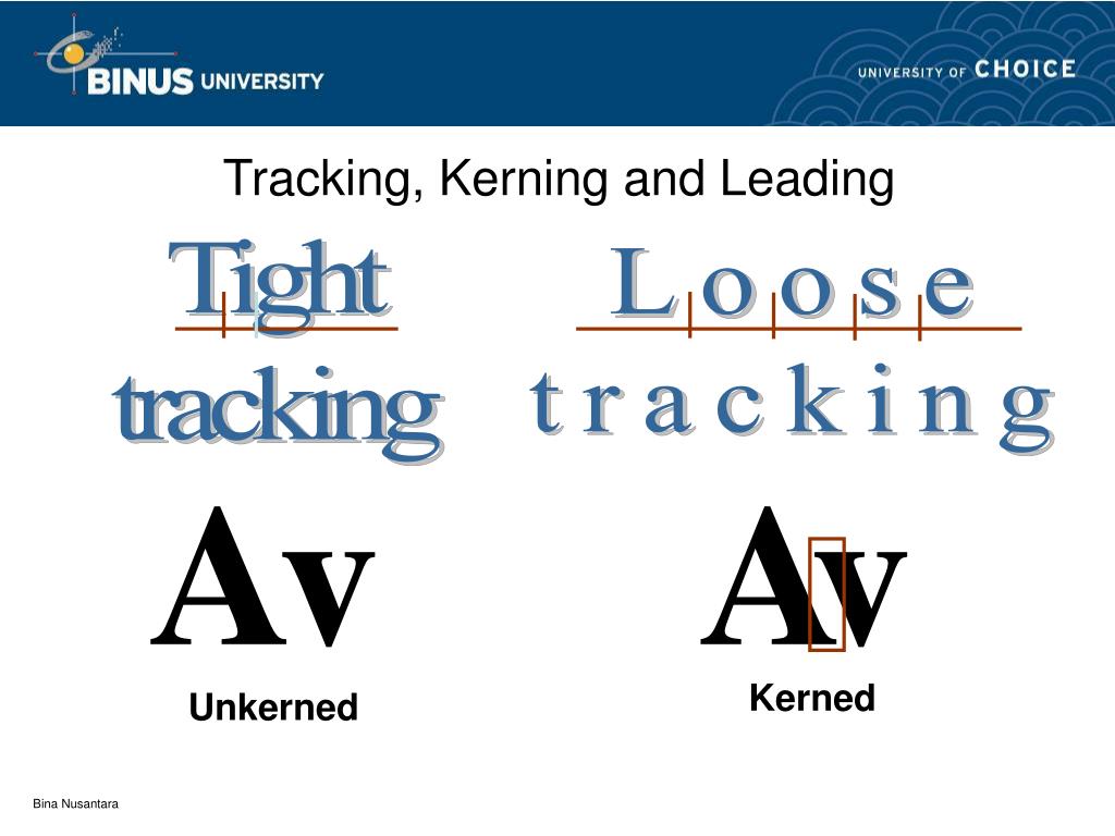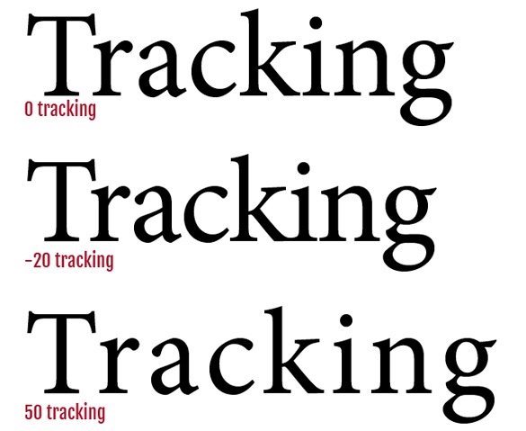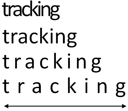 К сожалению, это также иногда называют межбуквенным интервалом, что усугубляет путаницу, которая может возникнуть между отслеживанием и кернингом. Когда отслеживание шрифта настраивается, расстояние между всеми символами изменяется одинаково и постепенно.