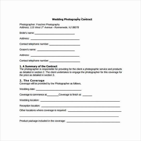 Хотя стили, пакеты и позы фотографов различаются, большинство контрактов на свадебную фотосъемку выглядят одинаково. Кларк говорит, что контракт на свадебную фотосъемку должен содержать следующие детали: