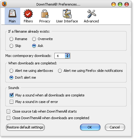 Вы также можете уточнять загружаемые файлы по настраиваемым критериям, чтобы получать только те типы файлов, которые вам действительно нужны. Более того, загрузка DownThemAll! происходит молниеносно — намного быстрее, чем менеджер загрузок Firefox по умолчанию, который в любом случае слаб, как ни крути.