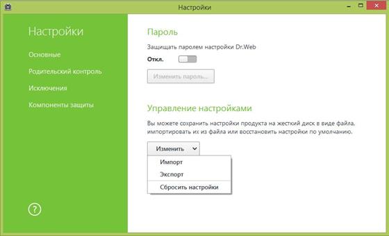 Web также необходимо ввести пароль, если в разделе Самозащита Основных настроек Dr.Web вы установили флажок Защищать паролем настройки Dr.Web.