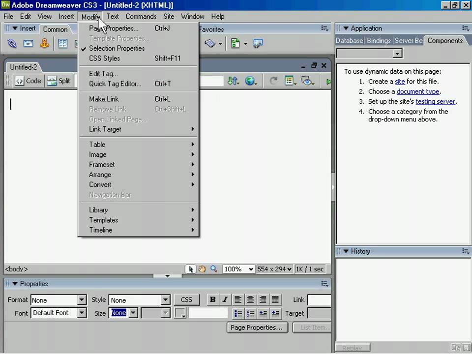 Чтобы открыть Dreamweaver, следуйте приведенным ниже инструкциям. Затем приступайте к изучению того, как создавать и изменять документ.