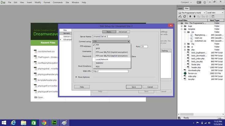 Настройка сайта в Dreamweaver Распространенной ошибкой новичков является начало работы над веб-страницами в Dreamweaver без определения сайта. Это приводит к тому, что ссылки на ресурсы, такие как изображения и таблицы стилей, указывают на местоположение на вашем локальном компьютере. Все работает нормально, пока вы не придете загружать сайт на удаленный сервер. Затем вы обнаружите, что все ваши ссылки не работают и нуждаются в исправлении. Избегайте этой сердечной боли, всегда определяя сайт. Это быстрая и простая задача.