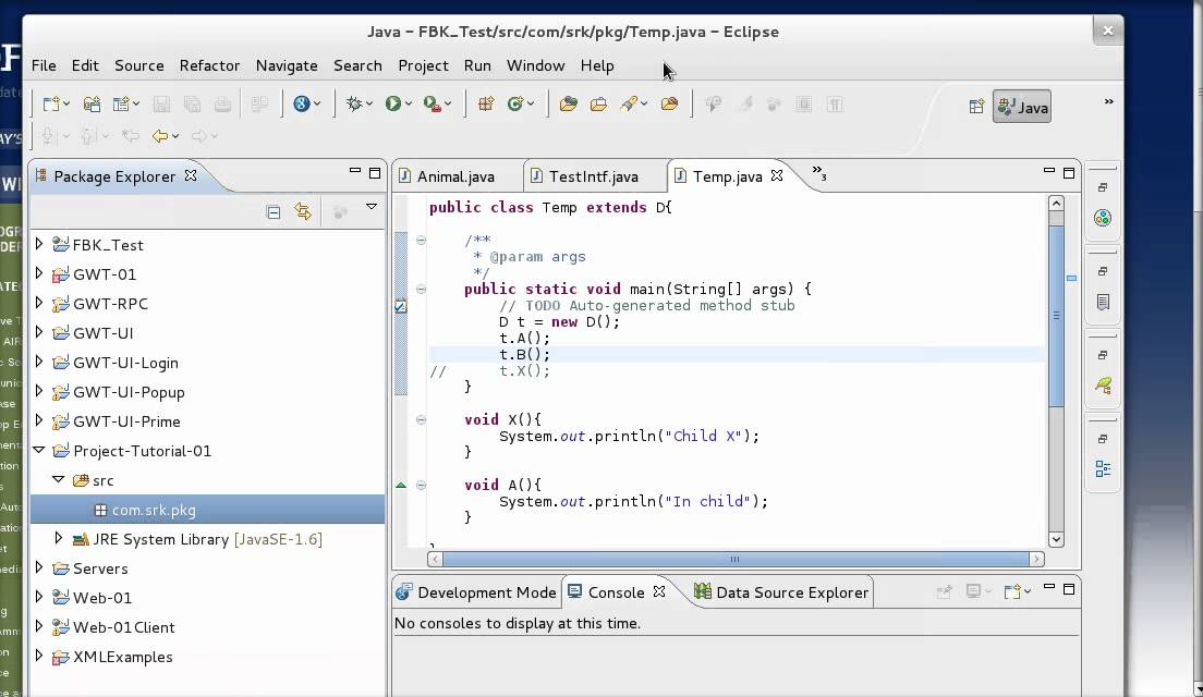 ключевое слово «супер» используется для обозначения членов непосредственного родительского класса. Доступ к переменной родительского класса с использованием ключевого слова super: В приведенном ниже примере класс B является подклассом класса A.