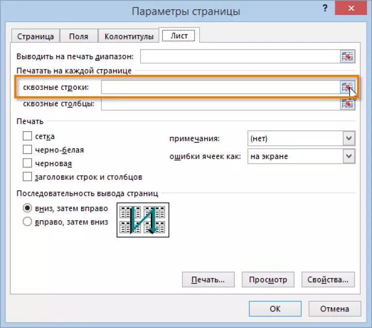 - Как установить свойства печати в Excel?