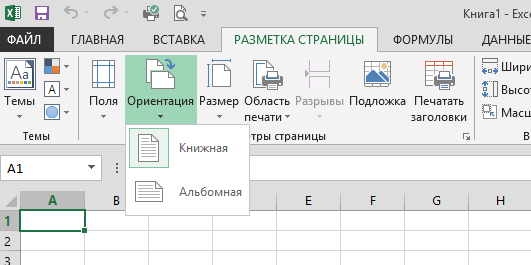 нем листы отделены настройки, которые вы ориентацию (книжная или