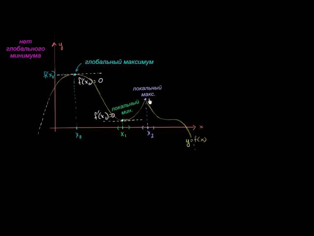 Мы говорим, что функция f ( x ) имеет глобальный максимум в х = х 0 на интервале I , если для всех .