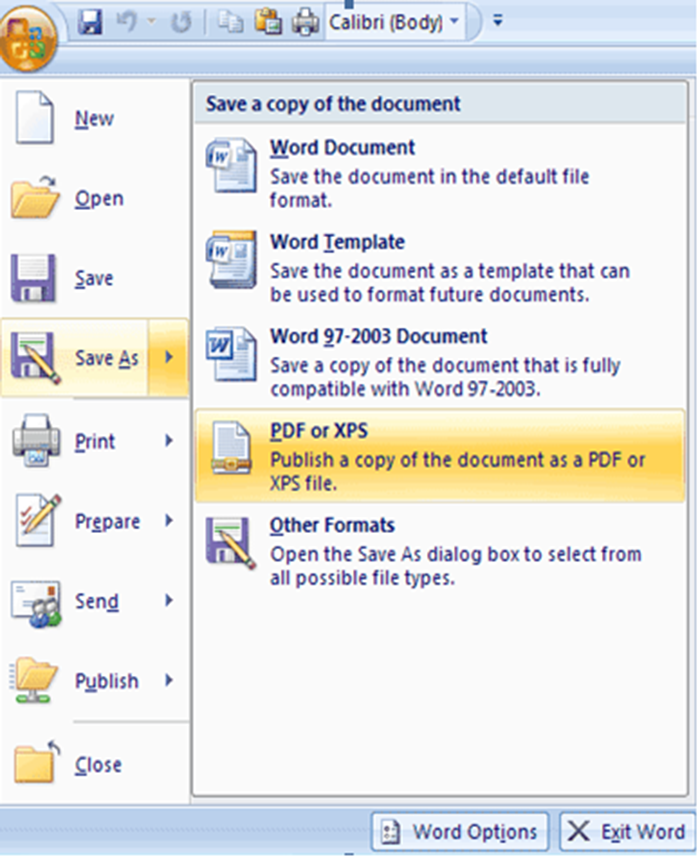 Выберите элементы Файл > Сохранить и отправить > Создать документ PDF/XPS > Создать PDF/XPS.