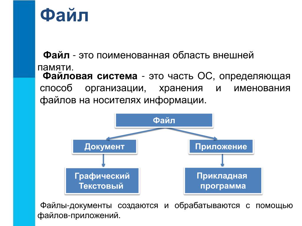 Файл представляет собой набор связанной информации, записанной во вторичном хранилище.