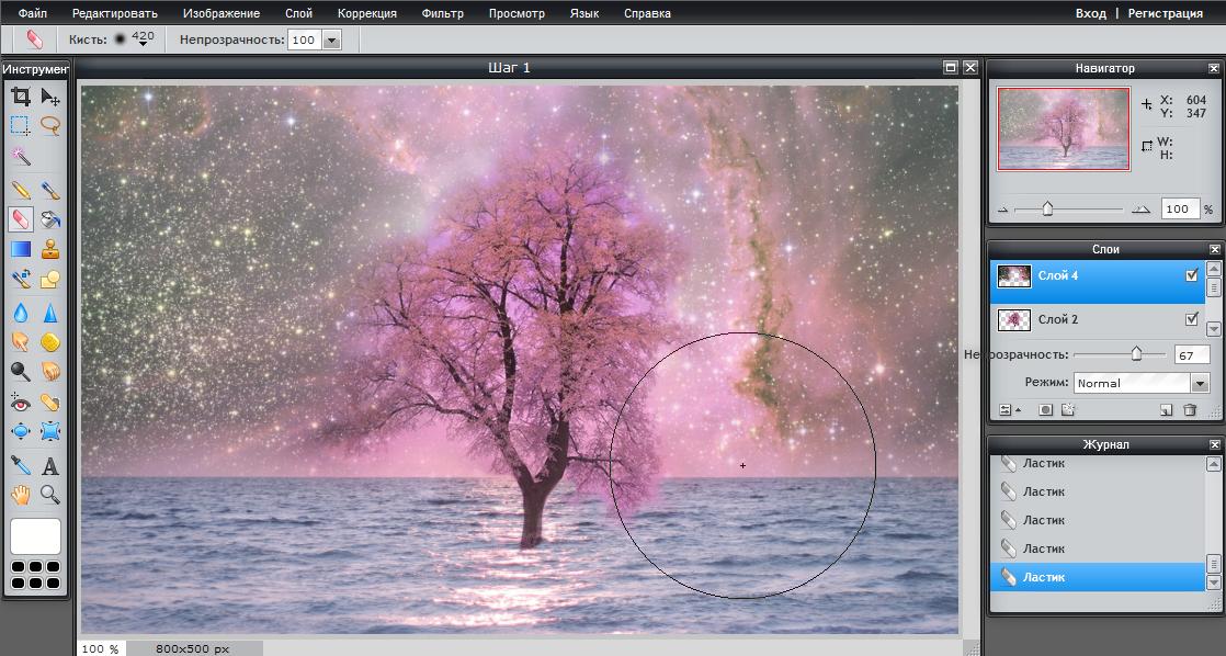 При несильном нажиме кисти изменения происходят медленно, что позволяет в нужный момент прекратить использование инструмента.