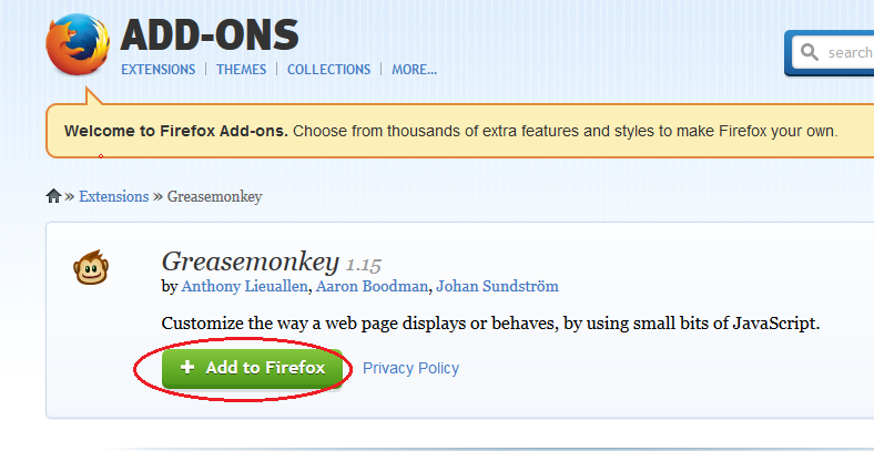Greasemonkey доступен для загрузки в магазине расширений Firefox и на таких сайтах, как softsonic. Если вы уже используете Firefox, лучшим и безопасным способом будет загрузка Greasemonkey из магазина. Вы будете избегать поддельного программного обеспечения, которое может испортить или взломать ваш компьютер.
