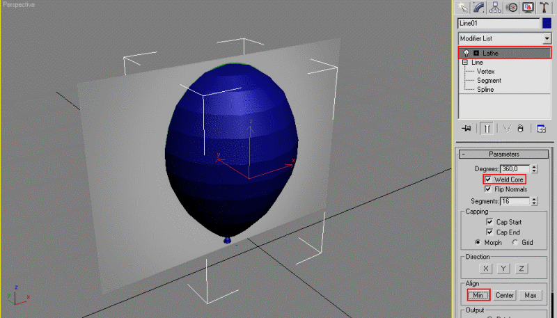 Если назначен вспомогательный объект, все нормали будут исходить из точки вращения вспомогательного объекта.