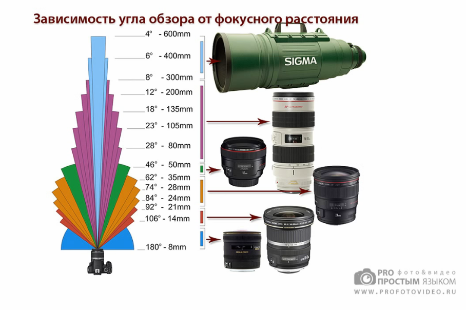 Фокусное расстояние объектива показывает, на сколько ‘далеко’ или ‘близко’ (широко) может ‘видеть’ объектив.