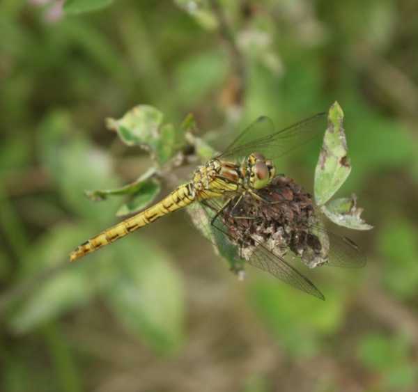 - Стрекоза обыкновенная. Окрас желтый, бурый или красноватый, меняется с течением времени. Длина брюшка – около 2,8 см. Цвет зависит от половой принадлежности. В основном такие стрекозы водятся возле болотной местности.
