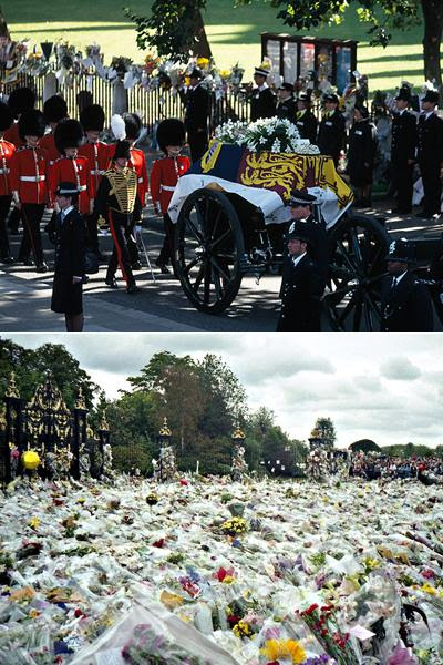 «В день похорон, когда королевская семья вышла из Букингемского дворца и мимо проехал лафет с гробом Дианы, королева склонила голову. До этого она склоняла голову только у Кенотафа [памятника Неизвестному Солдату] »[617].