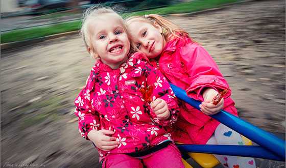 Выдержки, особенно если дети подвижные, ставьте максимально короткие. 1/500 — прекрасно! Но тут мы зависим еще и от значения ISO: в пасмурный день это одна величина, в ясный — другая (тут и выдержку можно выбрать еще короче — 1/1000). Готового рецепта нет — фотограф всегда отталкивается от имеющихся условий.