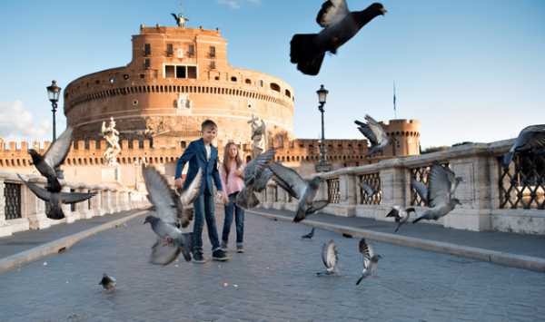 Чтобы не превращать поездку в непрекращающуюся фотосессию, стоит выделить дня два на часовую съёмку на рассвете или закате возле «визитной карточки» города. Как правило, это — не жёсткая постановочная съёмка. Можно продумать какие-то сюжеты заранее, но на месте дать детям свободу. Хочется иметь в альбоме фотографии с искренними эмоциями, с настоящими отношениями, динамикой. Дети порой дарят такие интересные спонтанные сюжеты! Мальчишки, например, любят ходить по бордюрам и парапетам и прыгать с них — чем не сюжет?