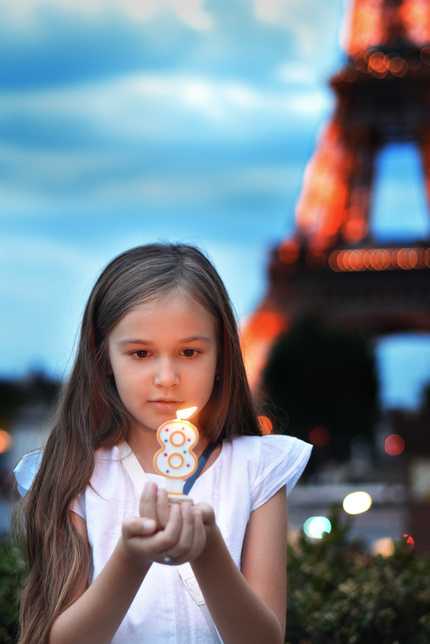 NIKON D810 / 20.0 mm f/2.8 УСТАНОВКИ: ISO 2000, F3.2, 1/160 с, 20.0 мм экв.Воздушные шарики создают радостное и праздничное настроение, и фотографии получаются эмоциональными, динамичными. Ведь это ещё и символ детства, счастья. А загадать желание и задуть именинные свечи на фоне Эйфелевой башни — это незабываемое событие в жизни ребёнка, и оно достойно быть запечатлённым на фотографии!